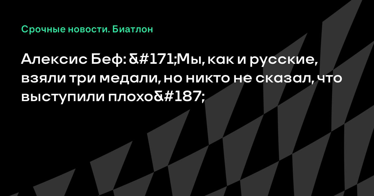 Я не считаю выступление российских биатлонистов неудачным. Но в вашей стране биатлон возведен буквально в культ, поэтому хочется видеть от спортсменов только победы. Но это же невозможно. Может, российским болельщикам стоит быть более терпимыми? Вот наша команда завоевала также три медали, и никто не сказал нам, что мы выступили плохо», – рассказал Беф в интервью Sportbox.ru.