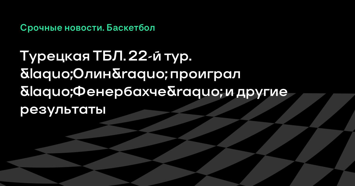 Турецкая ТБЛ. 22-й тур. «Олин» проиграл «Фенербахче» и другие результаты