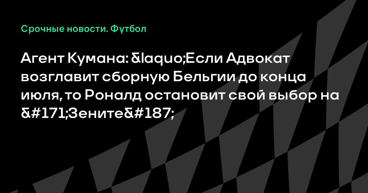 Агент Кумана: «Если Адвокат возглавит сборную Бельгии до конца июля, то Роналд остановит свой выбор на «Зените»