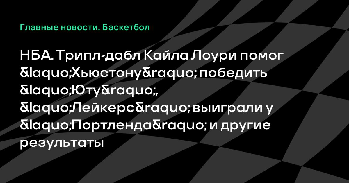 НБА. Трипл-дабл Кайла Лоури помог «Хьюстону» победить «Юту», «Лейкерс» выиграли у «Портленда» и другие результаты
