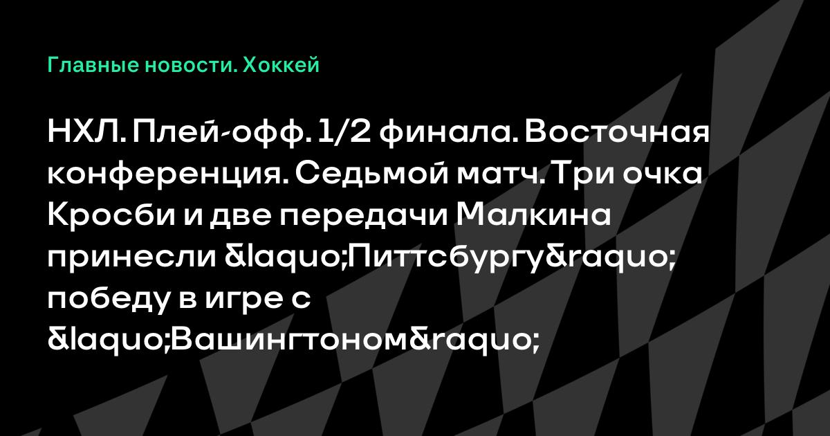 НХЛ. Плей-офф. 1/2 финала. Восточная конференция. Седьмой матч. Три очка Кросби и две передачи Малкина принесли «Питтсбургу» победу в игре с «Вашингтоном»