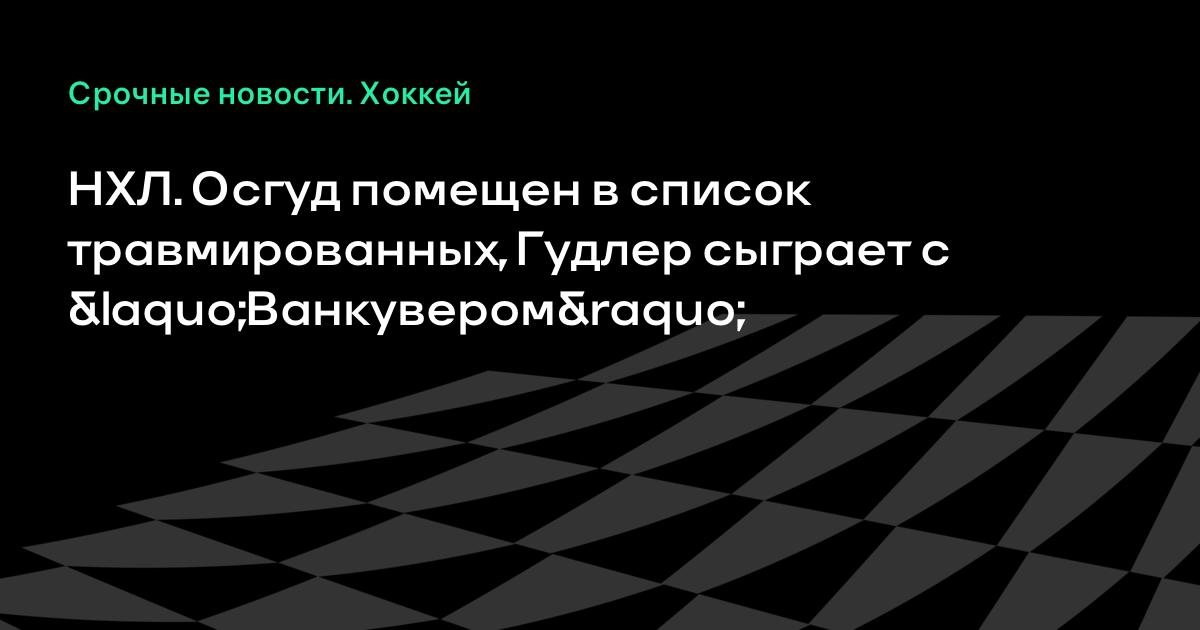 НХЛ. Осгуд помещен в список травмированных, Гудлер сыграет с «Ванкувером»