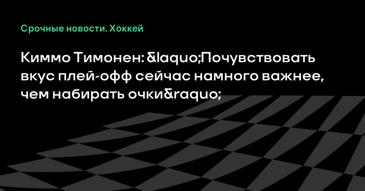 Киммо Тимонен: «Почувствовать вкус плей-офф сейчас намного важнее, чем набирать очки»