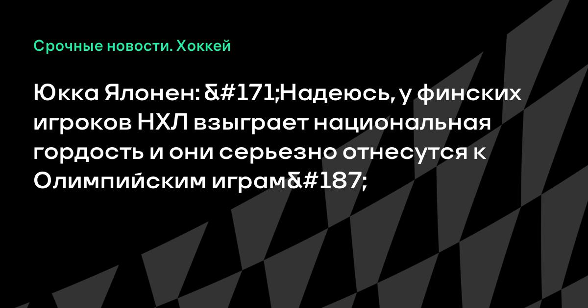 Юкка Ялонен: «Надеюсь, у финских игроков НХЛ взыграет национальная гордость и они серьезно отнесутся к Олимпийским играм»