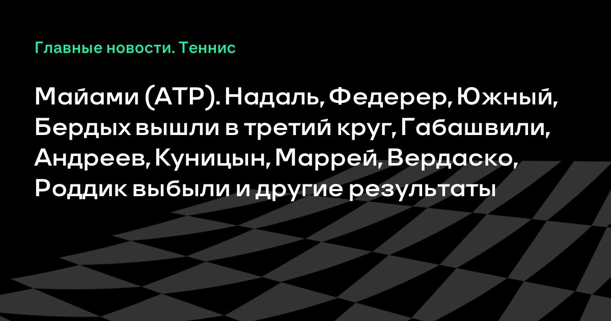 Майами (АТР). Надаль, Федерер, Южный, Бердых вышли в третий круг, Габашвили, Андреев, Куницын, Маррей, Вердаско, Роддик выбыли и другие результаты