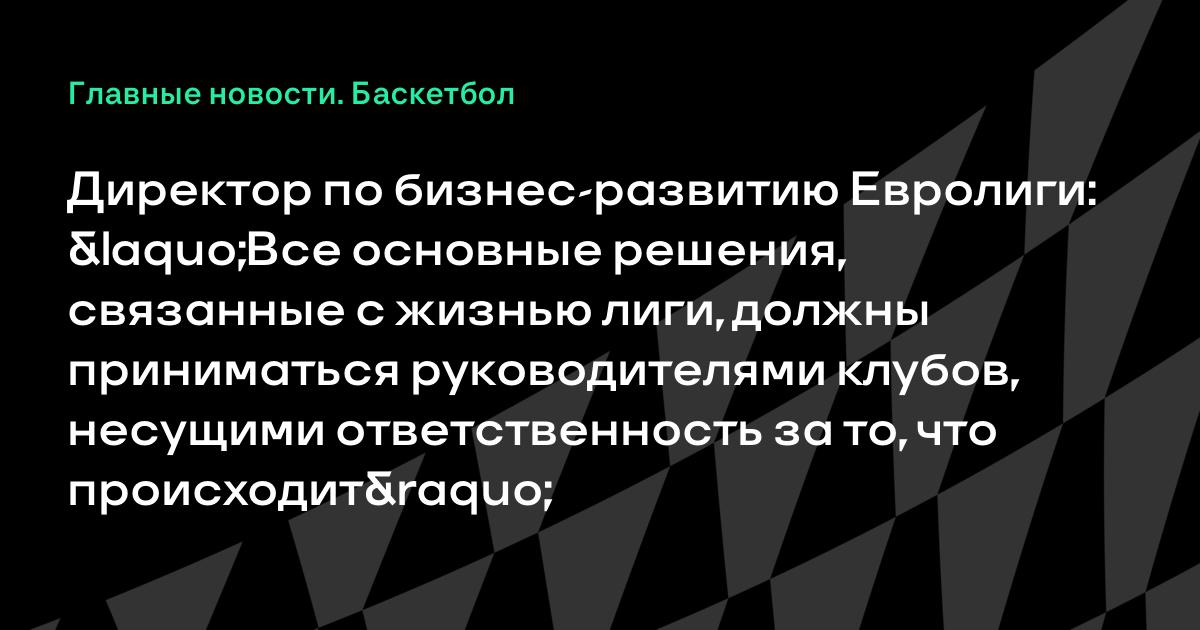 Директор по бизнес-развитию Евролиги: «Все основные решения, связанные с жизнью лиги, должны приниматься руководителями клубов, несущими ответственность за то, что происходит»