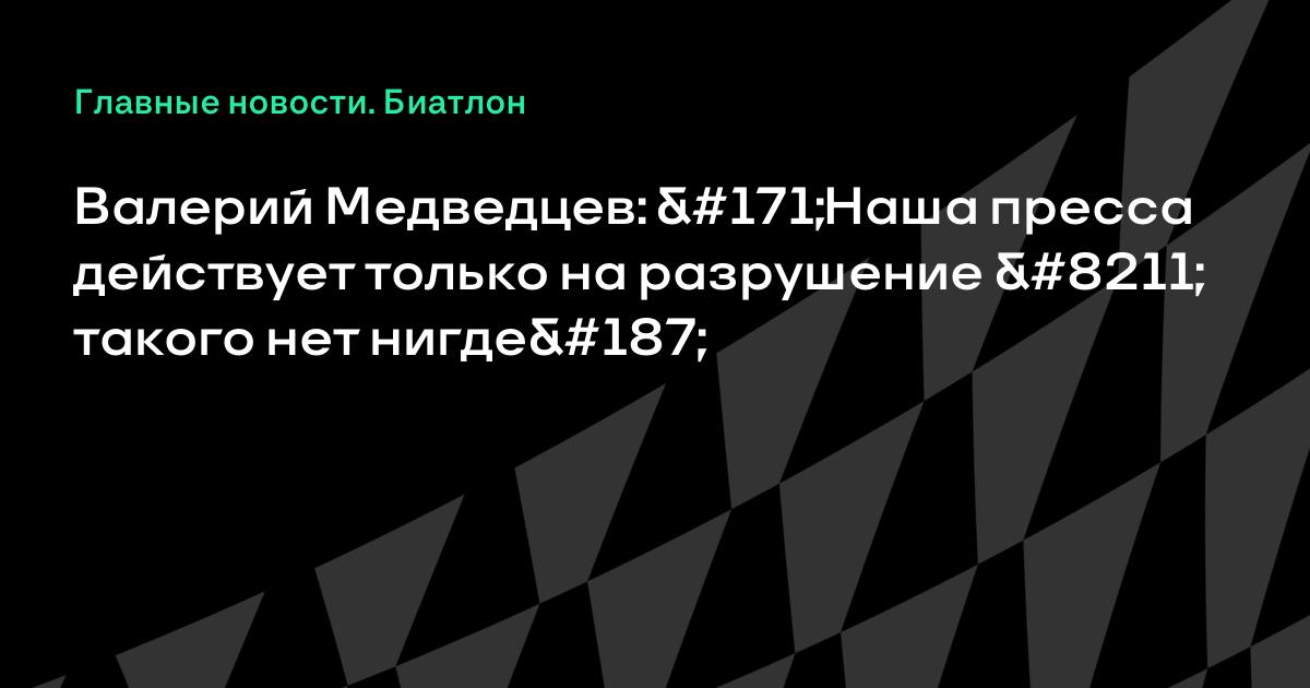 «Ни в какой стране мира так не делается. Такого отрицательного воздействия на команду, как у нас, нет нигде. Везде идет политика поддержки своих спортсменов. У нас же пресса действует только на разрушение. Чтобы судить об успехах или неудачах отечественного биатлона, надо знать хорошо хотя бы его историю», – приводят слова Медведцева «Городские новости».