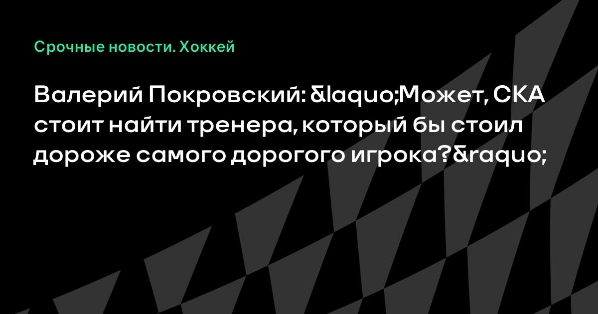 Валерий Покровский: «Может, СКА стоит найти тренера, который бы стоил дороже самого дорогого игрока?»