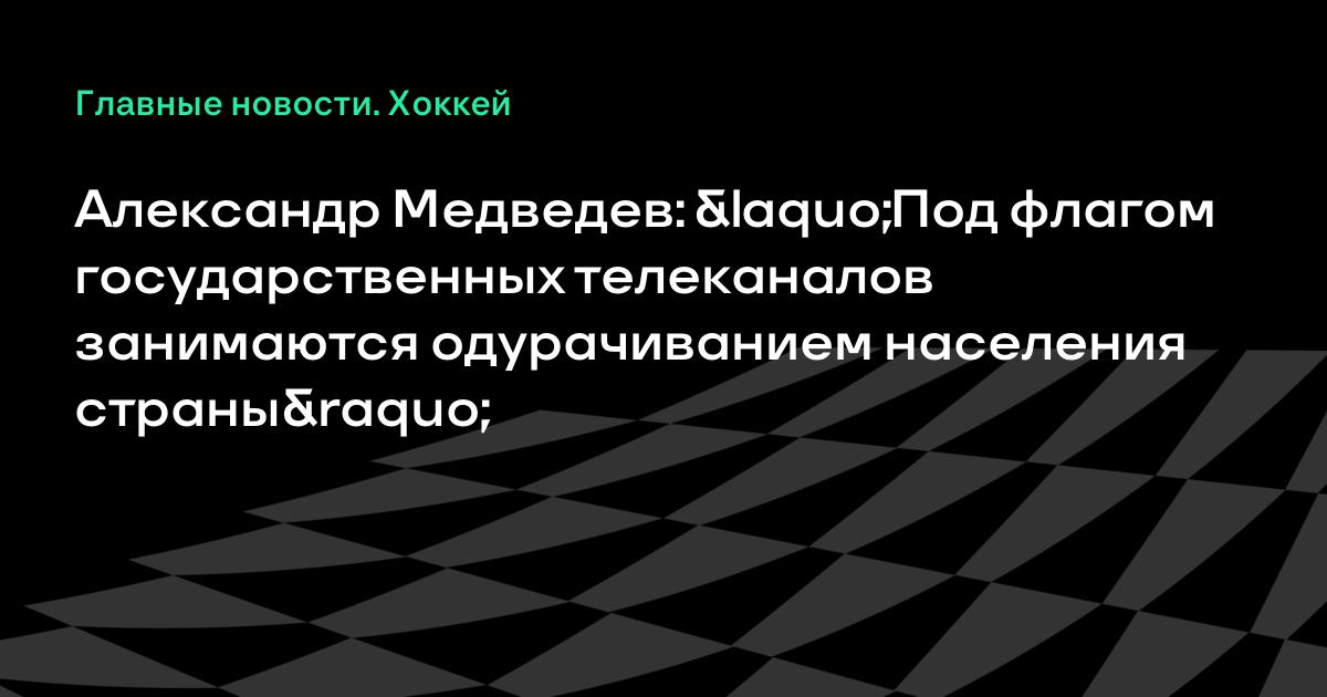 Мы специально провели исследования в нескольких регионах. Например, в Челябинской области по зрительскому интересу хоккей находится на втором месте после новостных выпусков. А в Татарстане во время плей-офф и вовсе на первом. Сериалы же, вопреки сфабрикованным рейтингам, едва попадают в десятку. Не дело, когда под флагом государственных каналов занимаются одурачиванием населения страны», цитирует Медведева «Спорт-Экспресс».