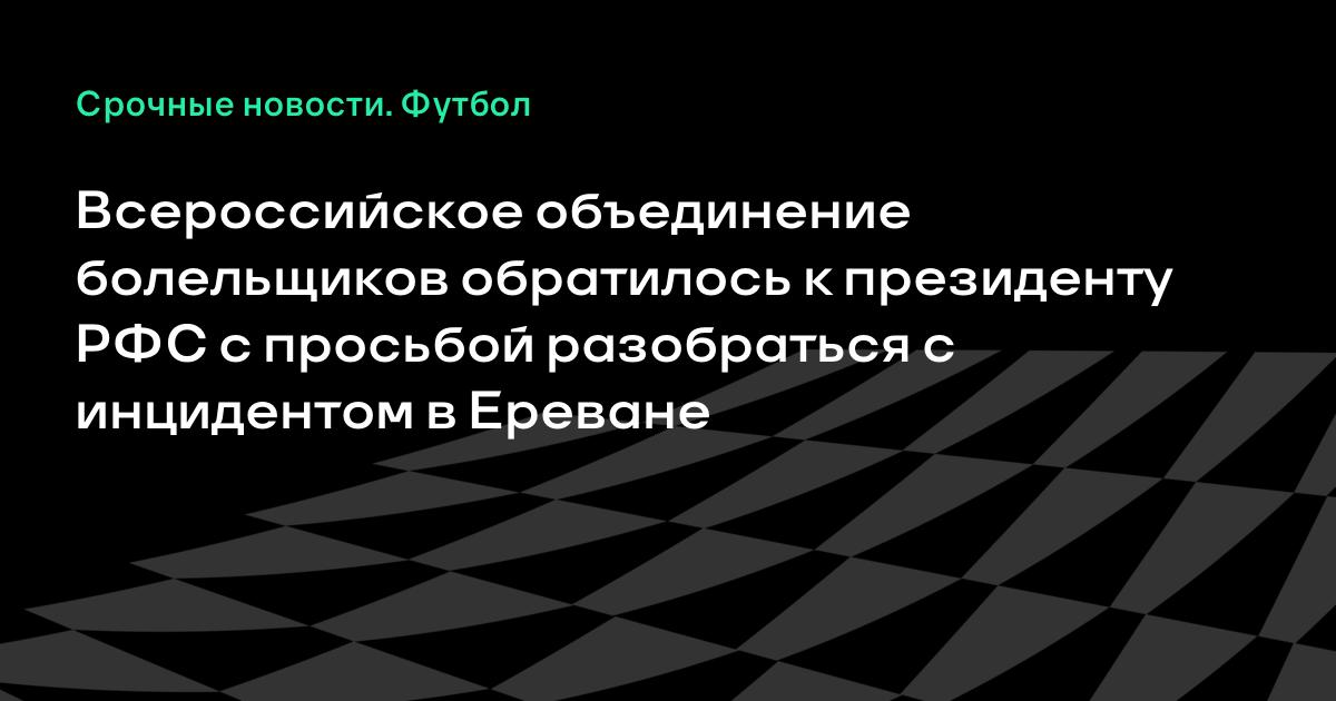 Всероссийское объединение болельщиков обратилось к президенту РФС с просьбой разобраться с инцидентом в Ереване