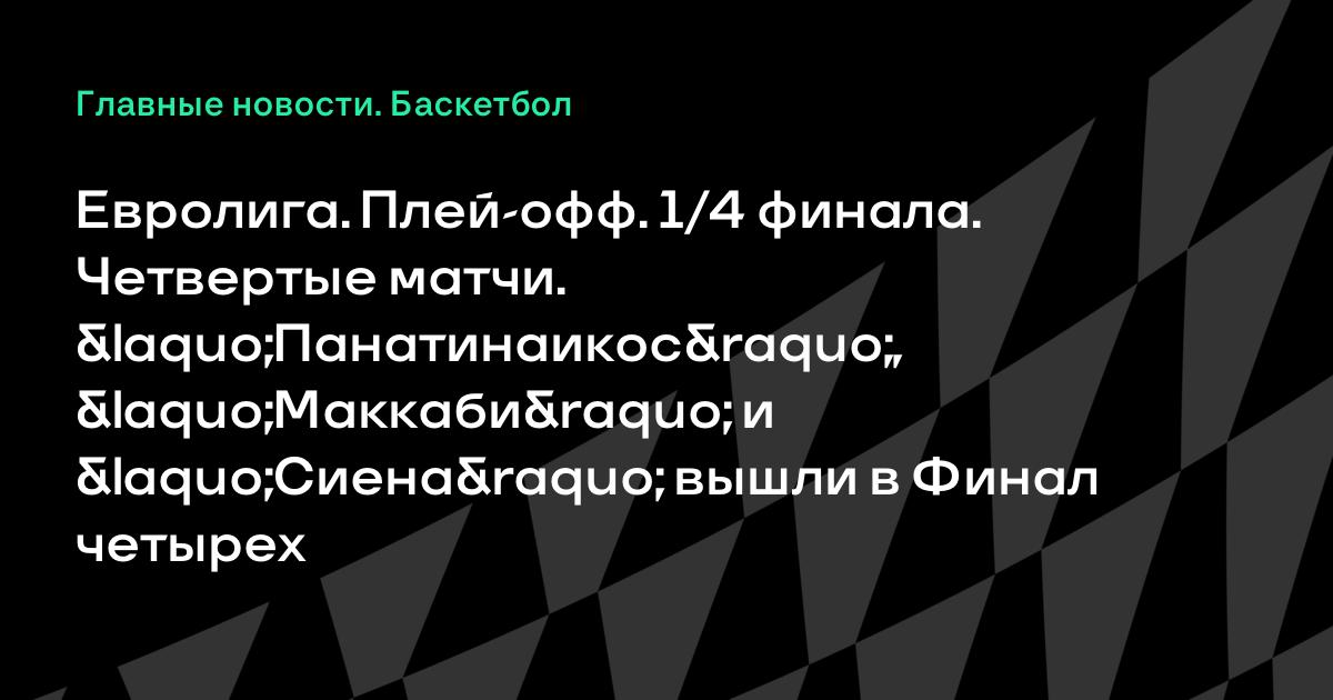 Евролига. Плей-офф. 1/4 финала. Четвертые матчи. «Панатинаикос», «Маккаби» и «Сиена» вышли в Финал четырех