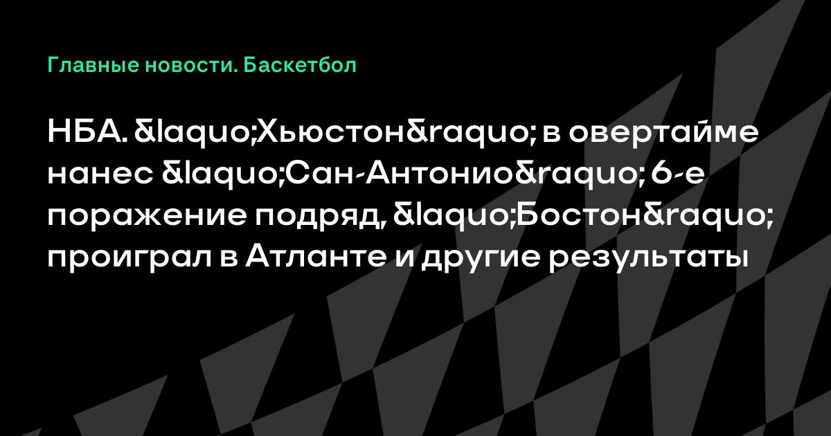 НБА. «Хьюстон» в овертайме нанес «Сан-Антонио» 6-е поражение подряд, «Бостон» проиграл в Атланте и другие результаты