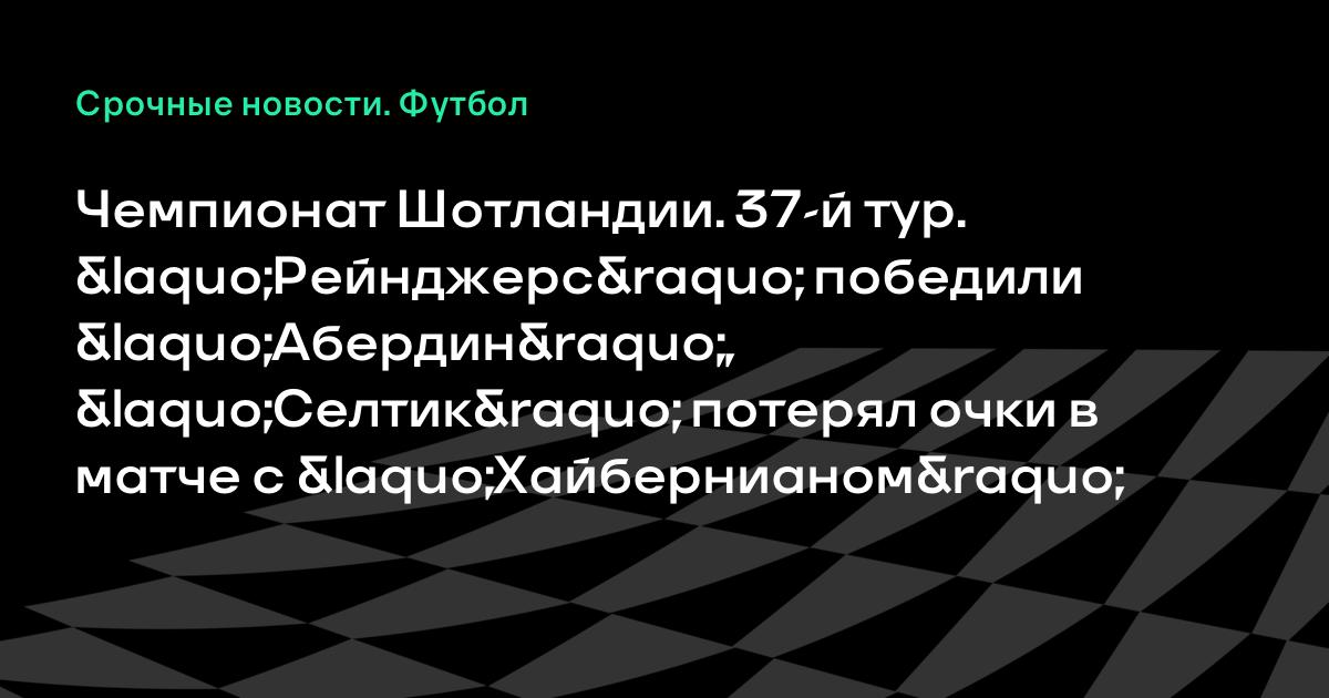 Чемпионат Шотландии. 37-й тур. «Рейнджерс» победили «Абердин», «Селтик» потерял очки в матче с «Хайбернианом»