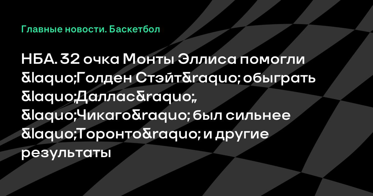 НБА. 32 очка Монты Эллиса помогли «Голден Стэйт» обыграть «Даллас», «Чикаго» был сильнее «Торонто» и другие результаты