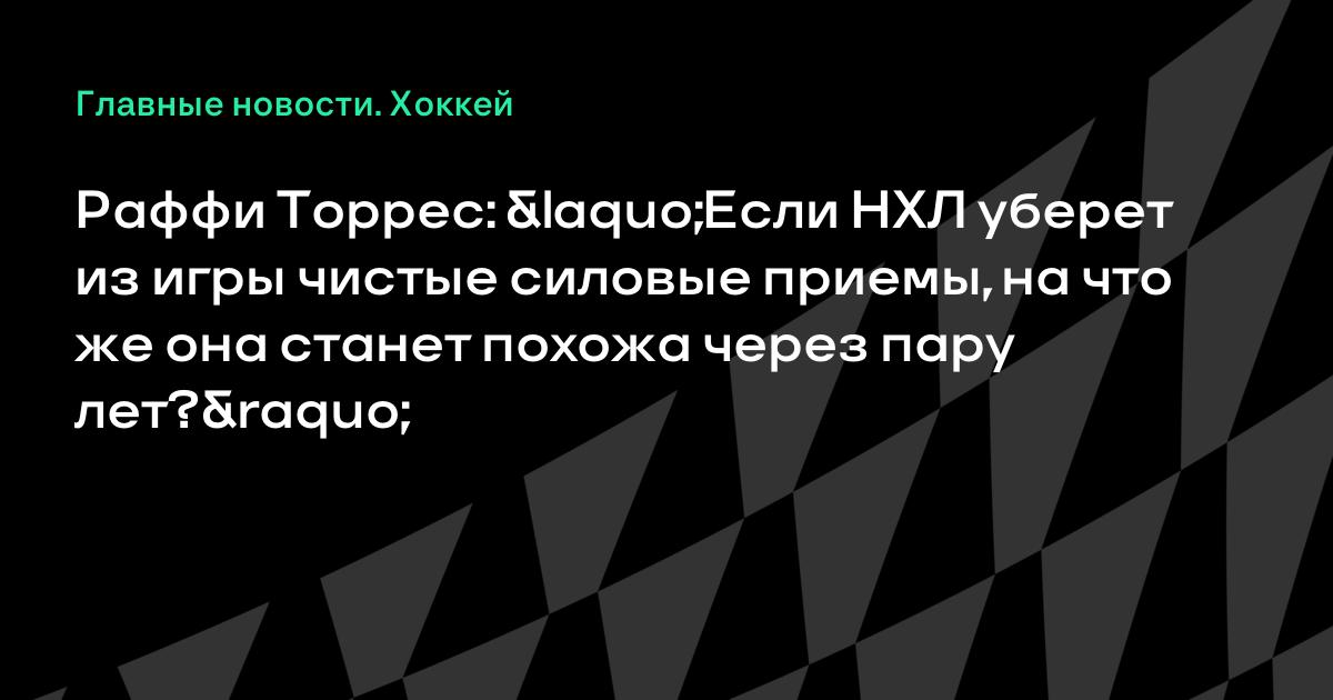 Раффи Торрес: «Если НХЛ уберет из игры чистые силовые приемы, на что же она станет похожа через пару лет?»