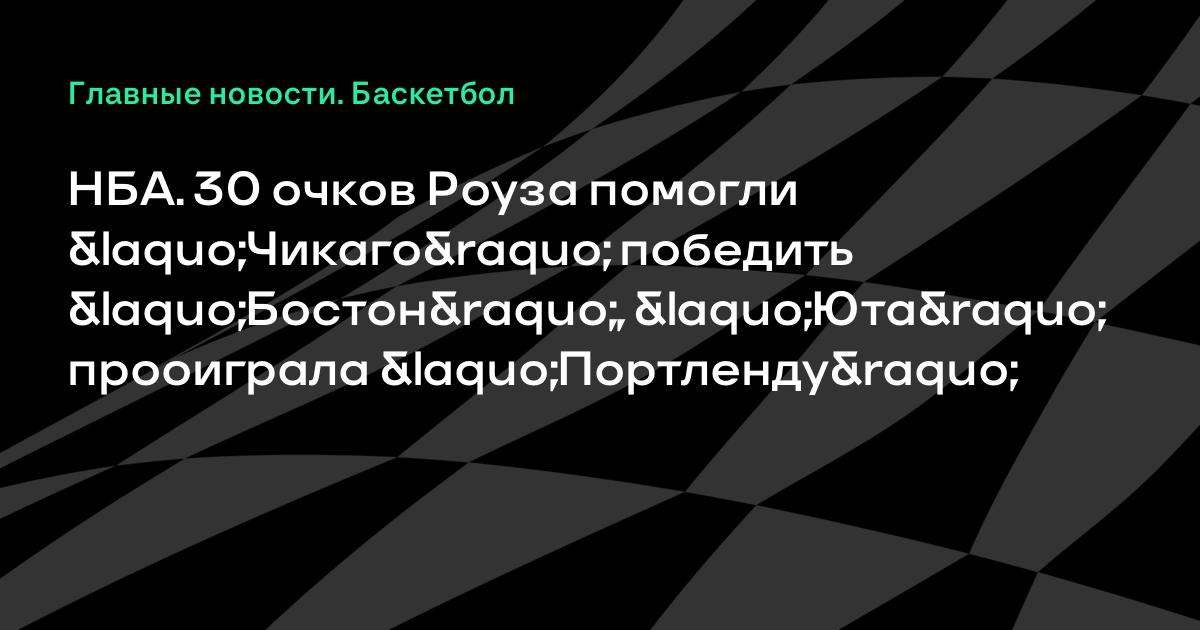 НБА. 30 очков Роуза помогли «Чикаго» победить «Бостон», «Юта» прооиграла «Портленду»
