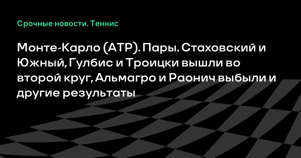 Монте-Карло (АТР). Пары. Стаховский и Южный, Гулбис и Троицки вышли во второй круг, Альмагро и Раонич выбыли и другие результаты