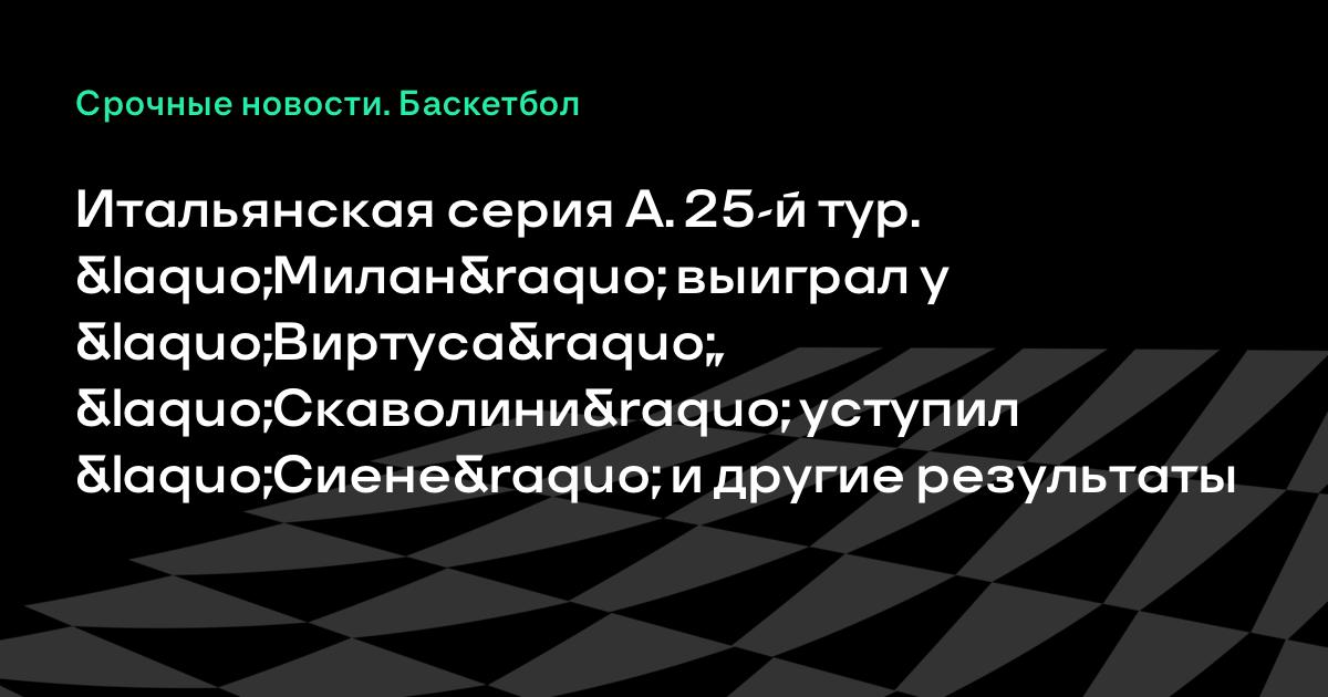 Итальянская серия А. 25-й тур. «Милан» выиграл у «Виртуса», «Скаволини» уступил «Сиене» и другие результаты