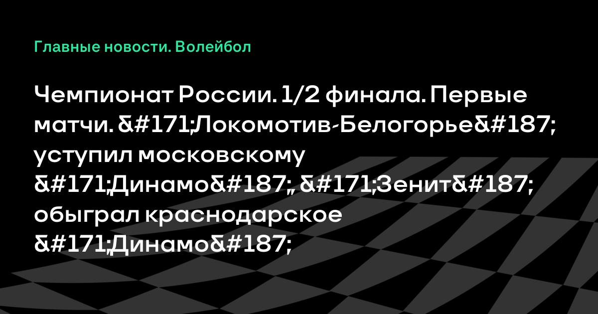 Чемпионат России. 1/2 финала. Первые матчи. «Локомотив-Белогорье» уступил московскому «Динамо», «Зенит» обыграл краснодарское «Динамо»