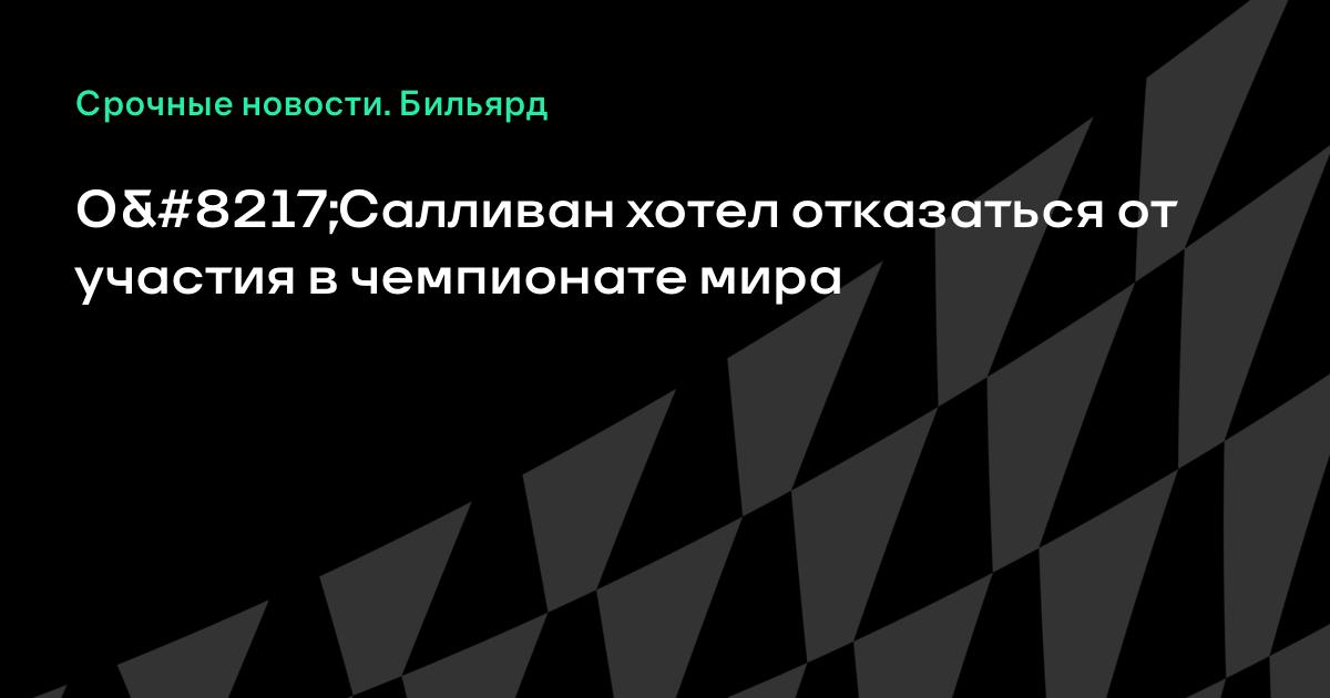 О’Салливан хотел отказаться от участия в чемпионате мира