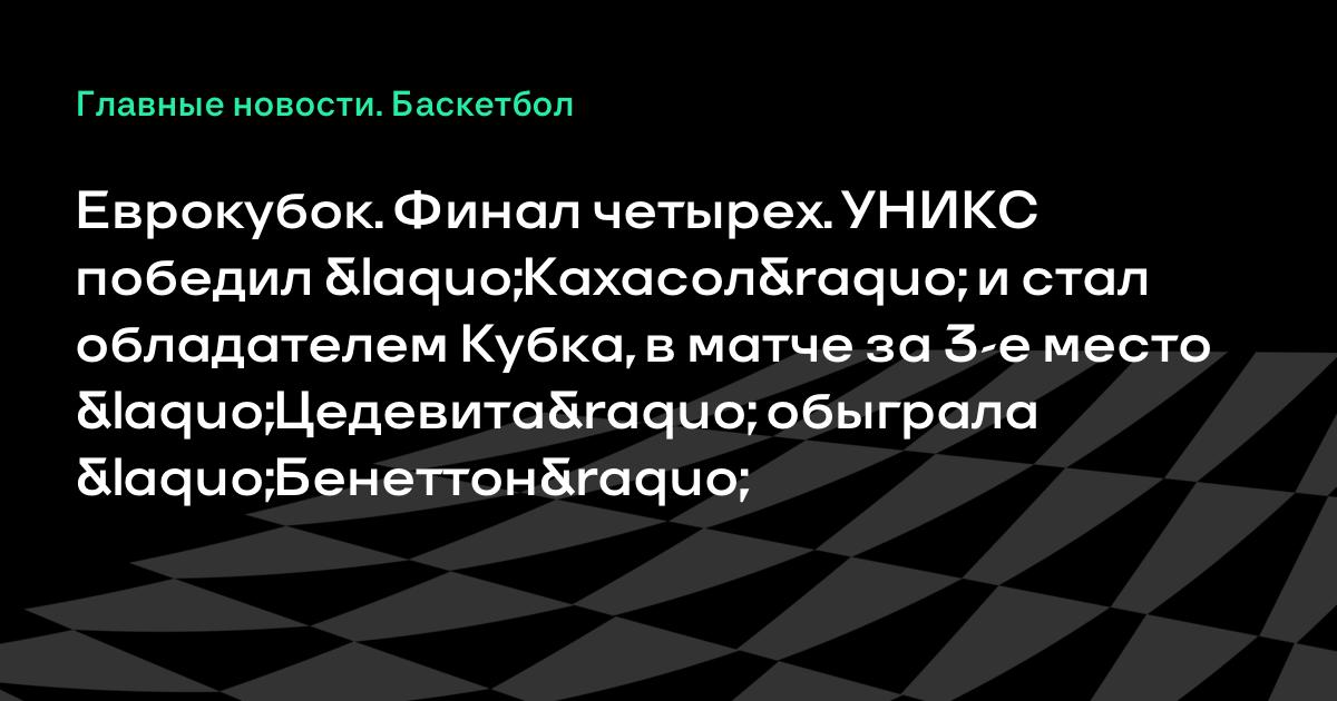 Еврокубок. Финал четырех. УНИКС победил «Кахасол» и стал обладателем Кубка, в матче за 3-е место «Цедевита» обыграла «Бенеттон»