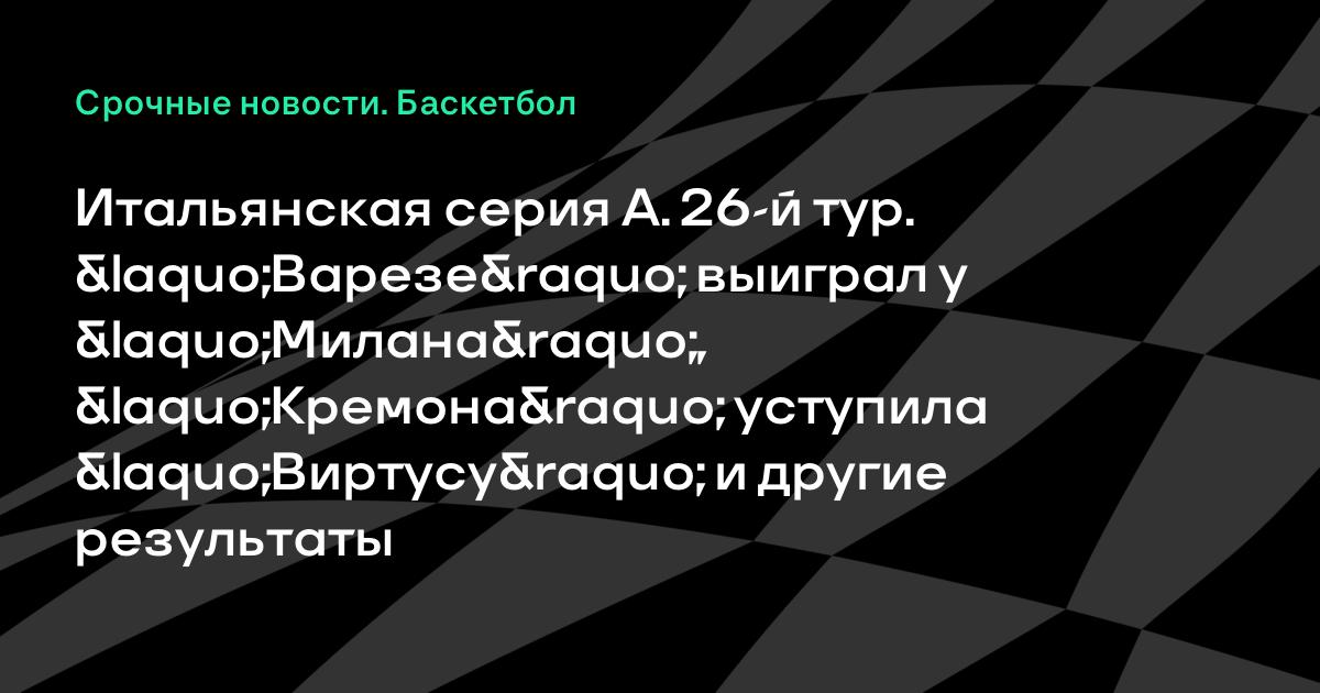 Итальянская серия А. 26-й тур. «Варезе» выиграл у «Милана», «Кремона» уступила «Виртусу» и другие результаты