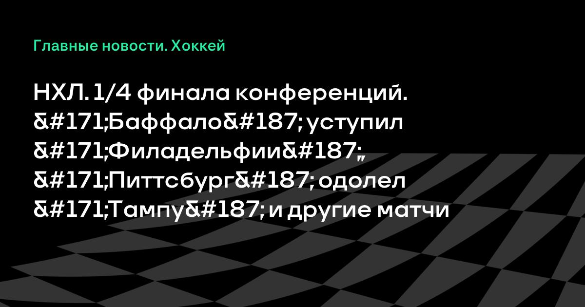 19 апреля 2011, 09:02 НХЛ. 1/4 финала конференций. «Баффало» уступил «Филадельфии», «Питтсбург» одолел «Тампу» и другие матчи Кубок Стэнли
