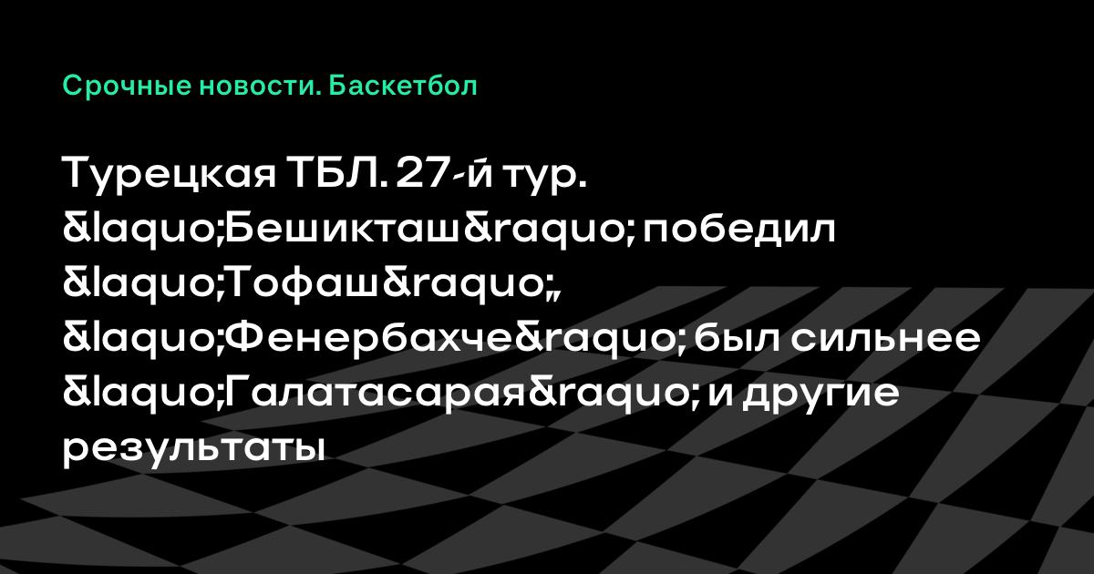 Турецкая ТБЛ. 27-й тур. «Бешикташ» победил «Тофаш», «Фенербахче» был сильнее «Галатасарая» и другие результаты