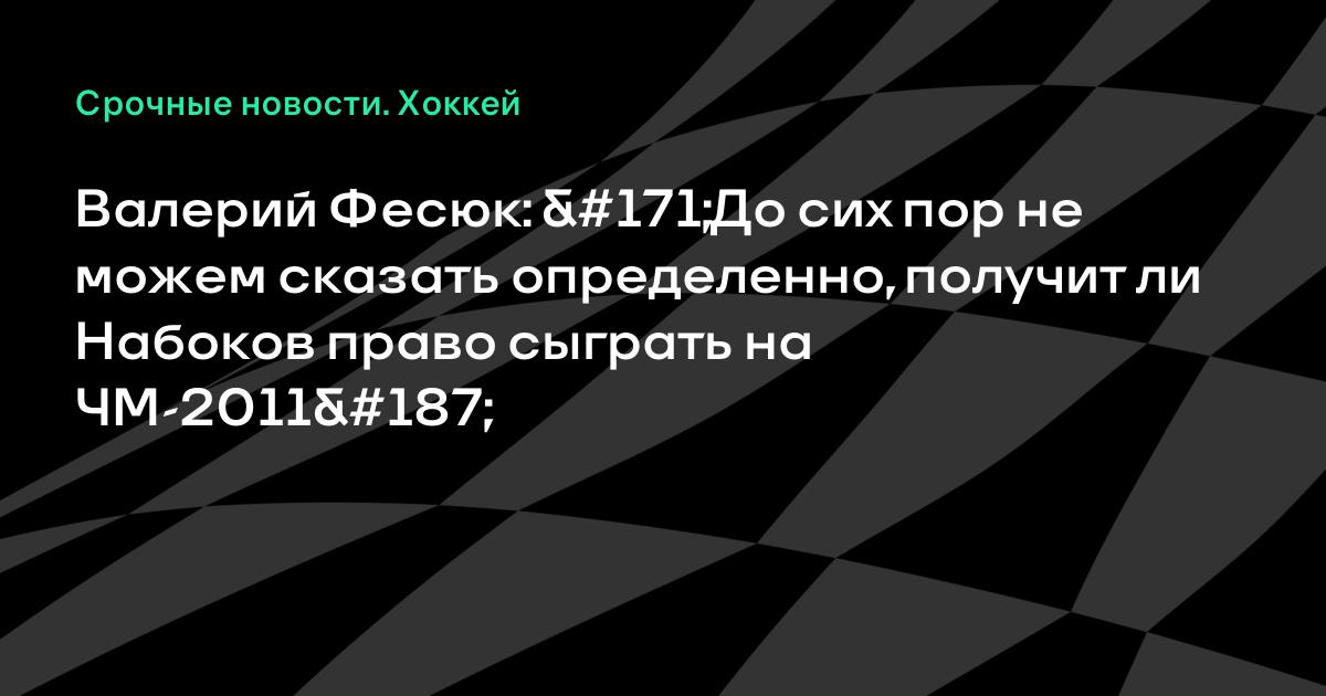 При этом неясный правовой статус Набокова не мешает ему участвовать в Евротуре, поскольку этот турнир проводится не под эгидой ИИХФ», – приводит слова Фесюка «Спорт-Экспресс».