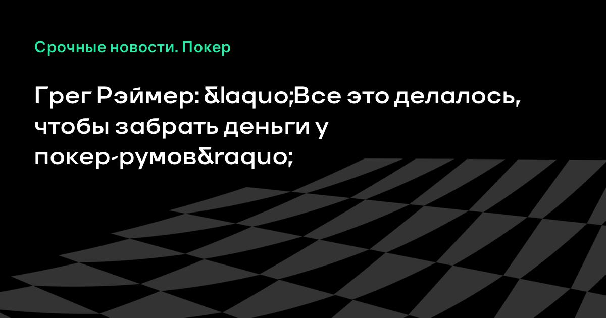 Грег Рэймер: «Все это делалось, чтобы забрать деньги у покер-румов»