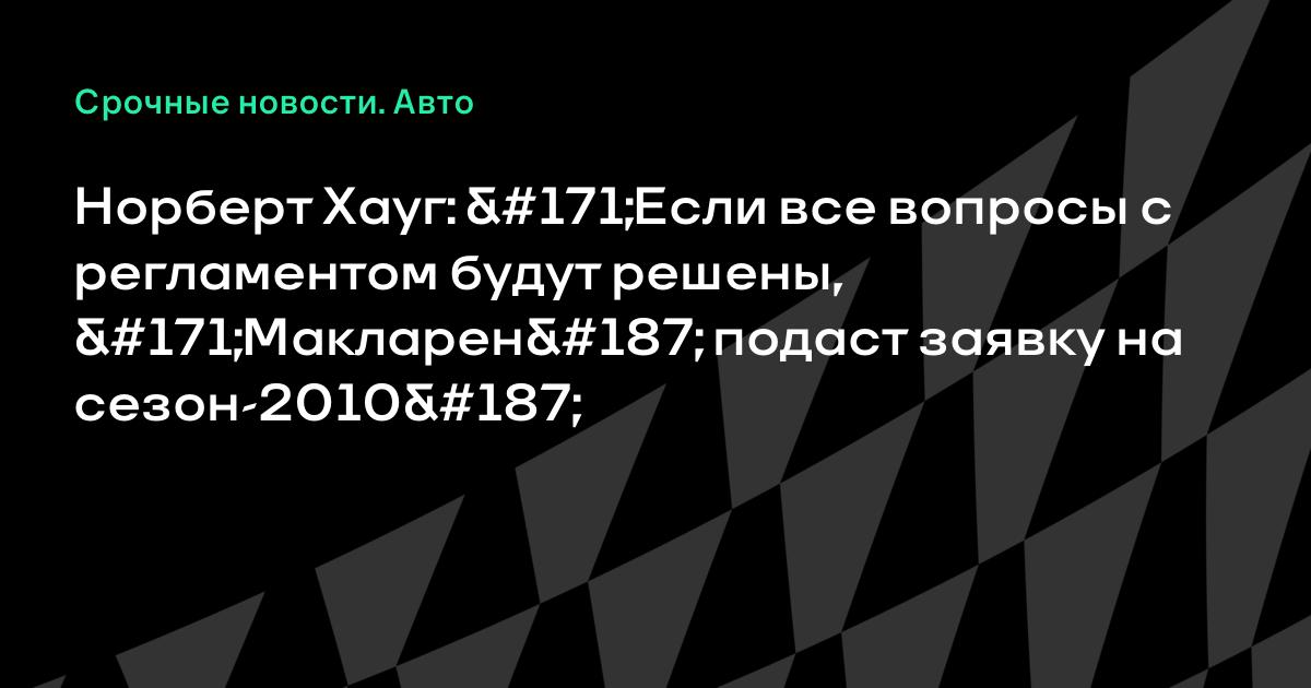 Норберт Хауг: «Если все вопросы с регламентом будут решены, «Макларен» подаст заявку на сезон-2010»