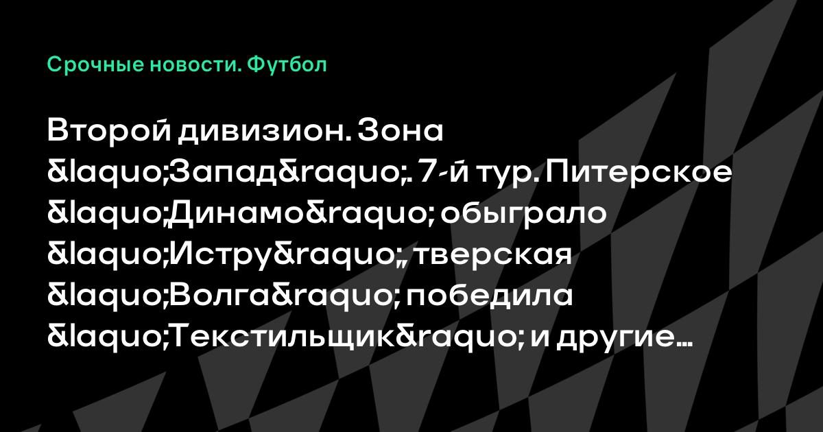 Второй дивизион. Зона «Запад». 7-й тур. Питерское «Динамо» обыграло «Истру», тверская «Волга» победила «Текстильщик» и другие результаты