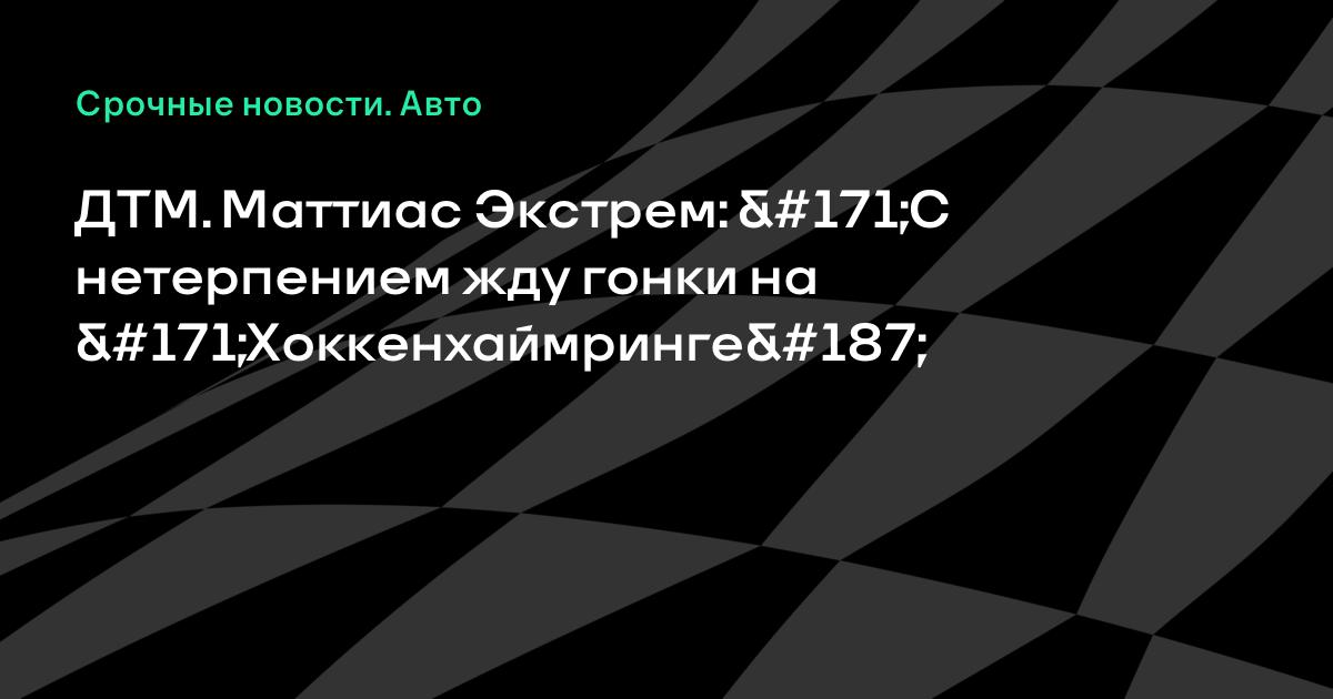 ДТМ. Маттиас Экстрем: «С нетерпением жду гонки на «Хоккенхаймринге»