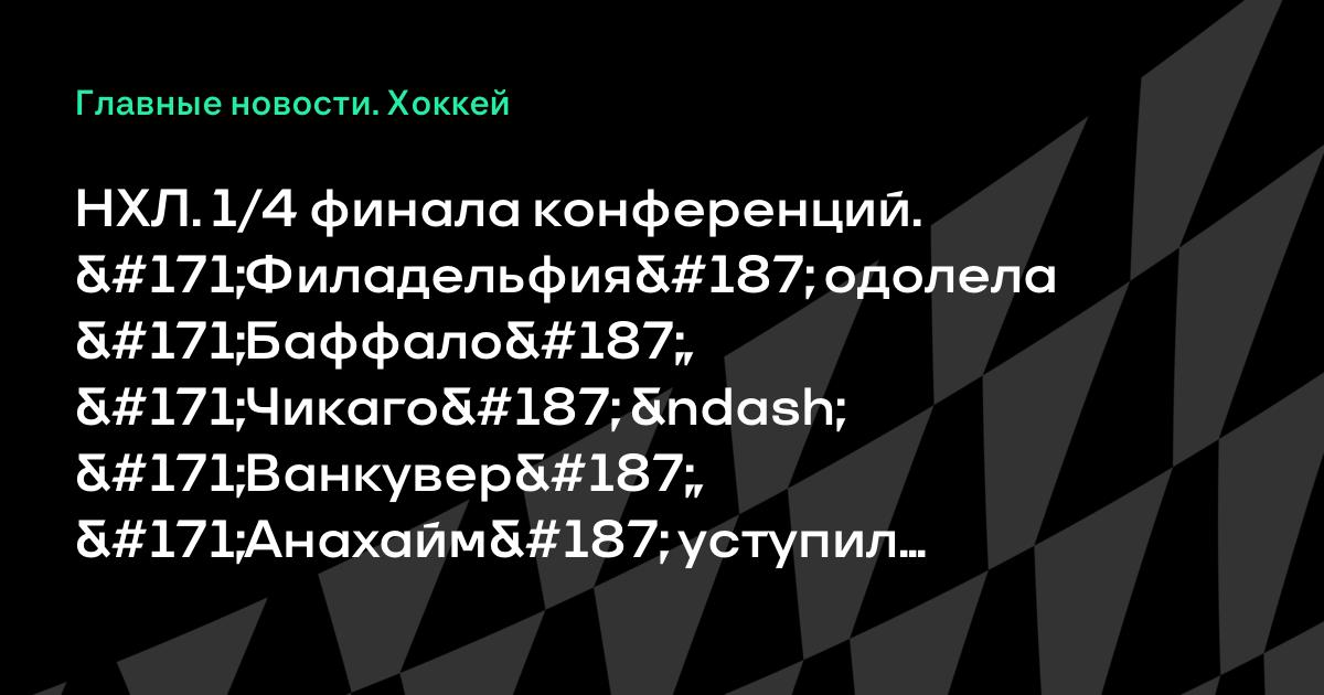 НХЛ. 1/4 финала конференций. «Филадельфия» одолела «Баффало», «Чикаго» – «Ванкувер», «Анахайм» уступил «Нэшвиллу»