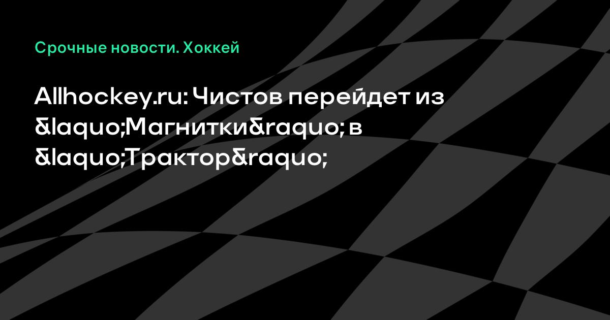 Allhockey.ru: Чистов перейдет из «Магнитки» в «Трактор»