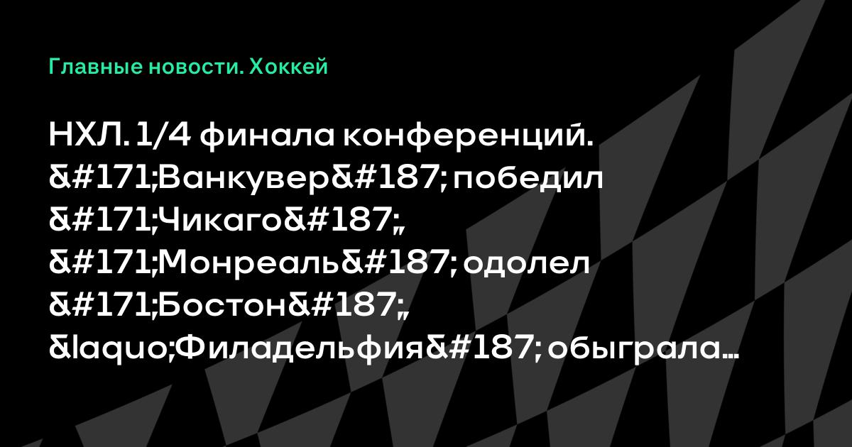 НХЛ. 1/4 финала конференций. «Ванкувер» победил «Чикаго», «Монреаль» одолел «Бостон», «Филадельфия» обыграла «Баффало»