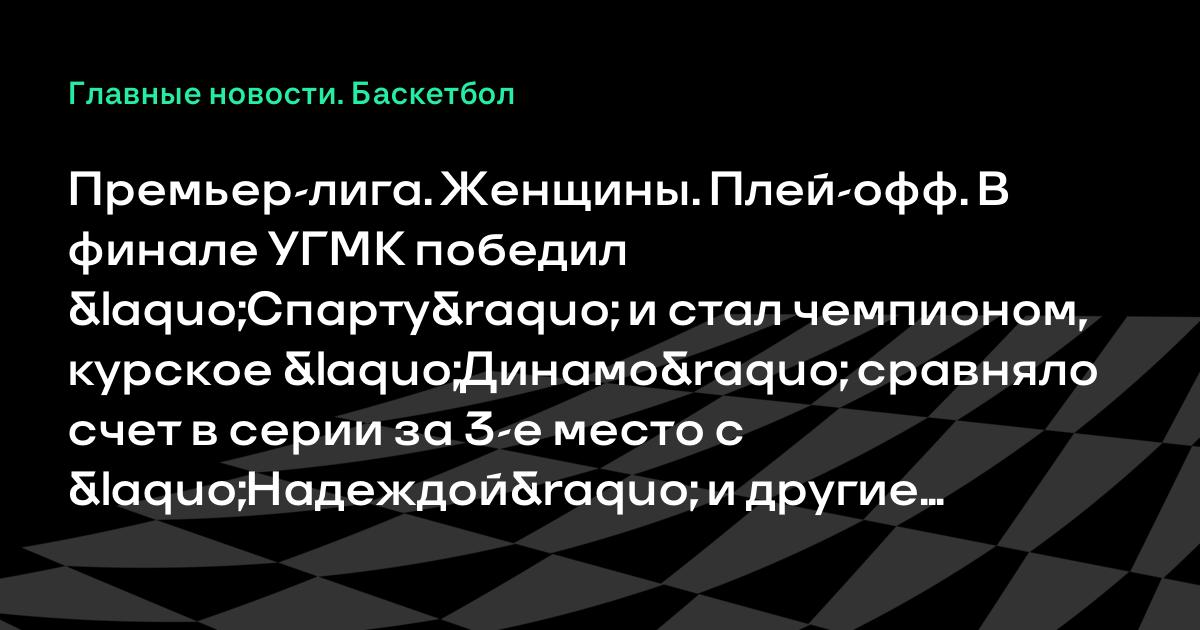 Премьер-лига. Женщины. Плей-офф. В финале УГМК победил «Спарту» и стал чемпионом, курское «Динамо» сравняло счет в серии за 3-е место с «Надеждой» и другие результаты