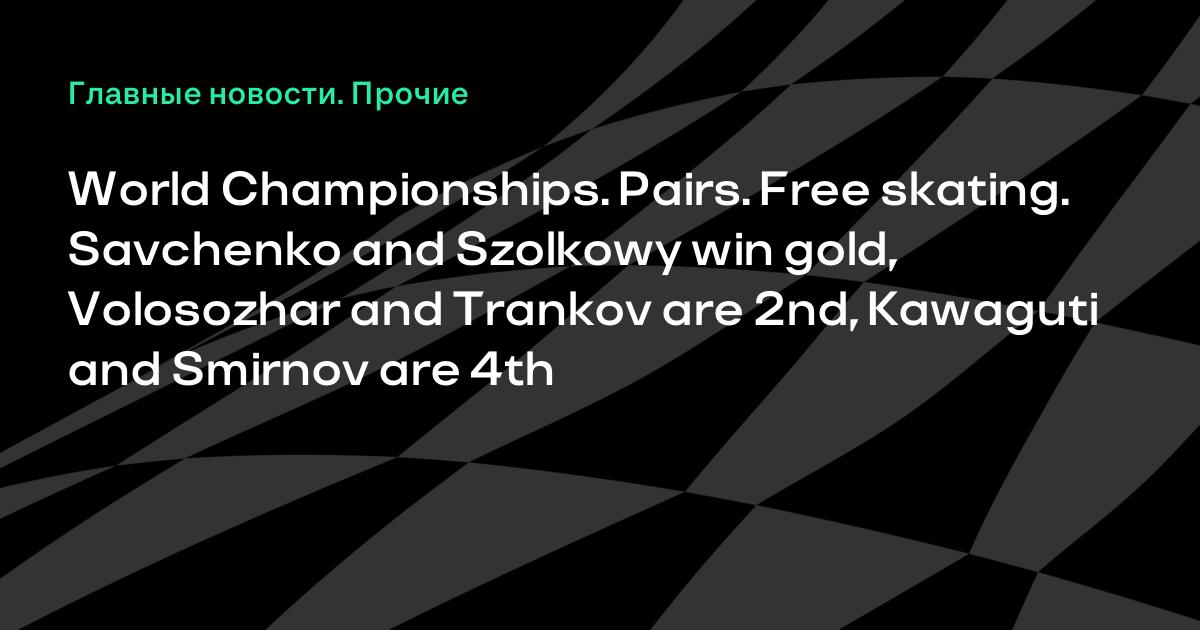 World Championships. Pairs. Free skating. Savchenko and Szolkowy win gold, Volosozhar and Trankov are 2nd, Kawaguti and Smirnov are 4th
