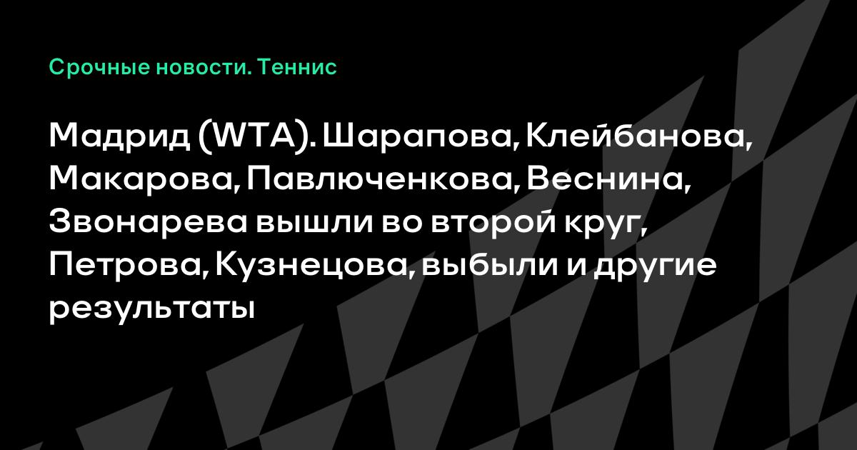 Мадрид (WTA). Шарапова, Клейбанова, Макарова, Павлюченкова, Веснина, Звонарева вышли во второй круг, Петрова, Кузнецова, выбыли и другие результаты