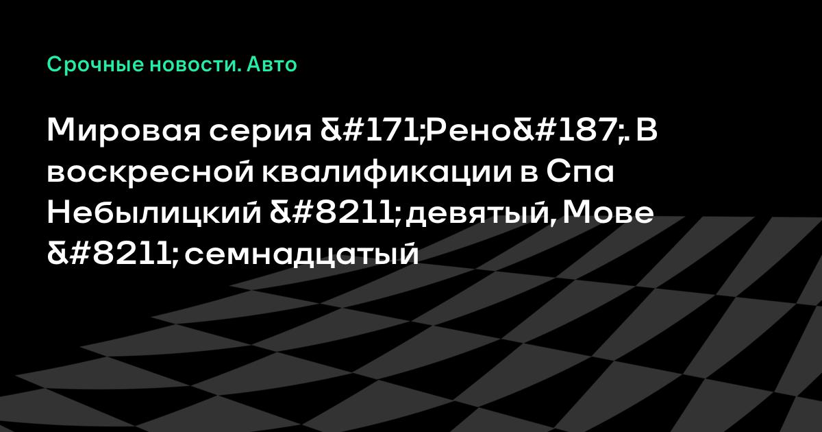 В квалификации перед воскресной гонкой «Мировой серии «Рено» в Спа российские гонщики Антон Небылицкий и Даниил Мове заняли девятое и семнадцатое места соответственно.