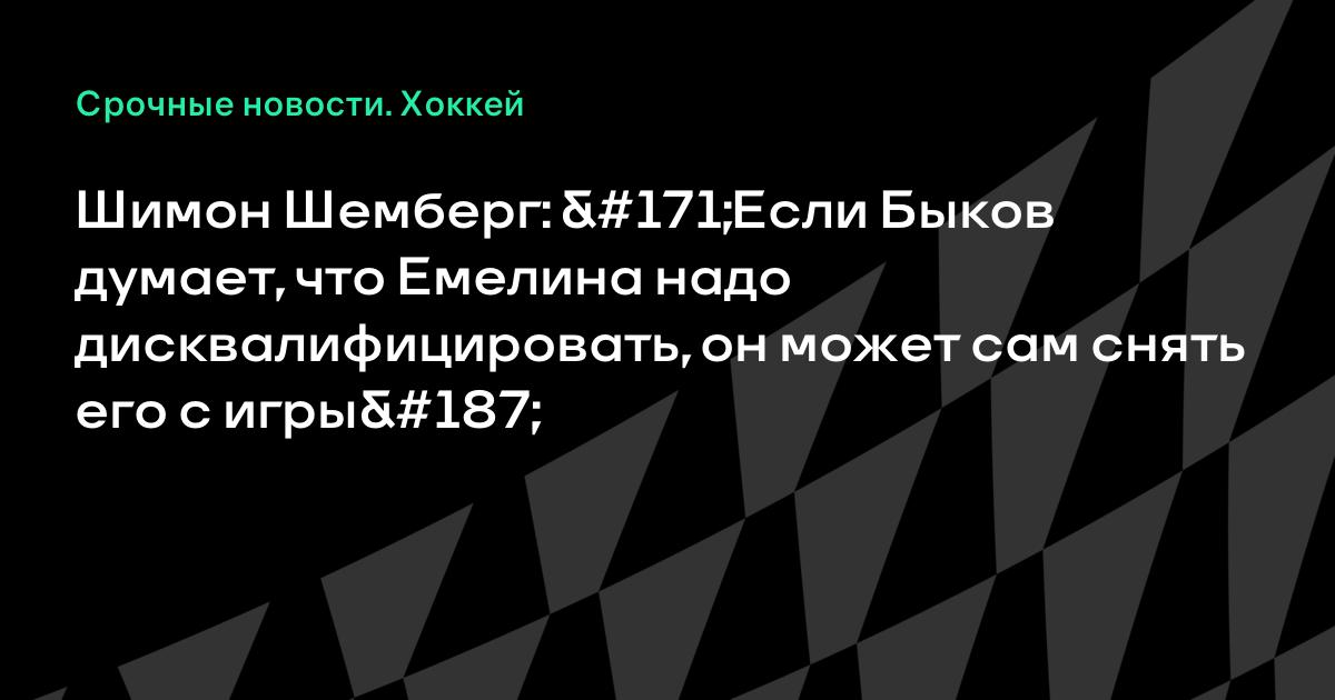 Шимон Шемберг: «Если Быков думает, что Емелина надо дисквалифицировать, он может сам снять его с игры»