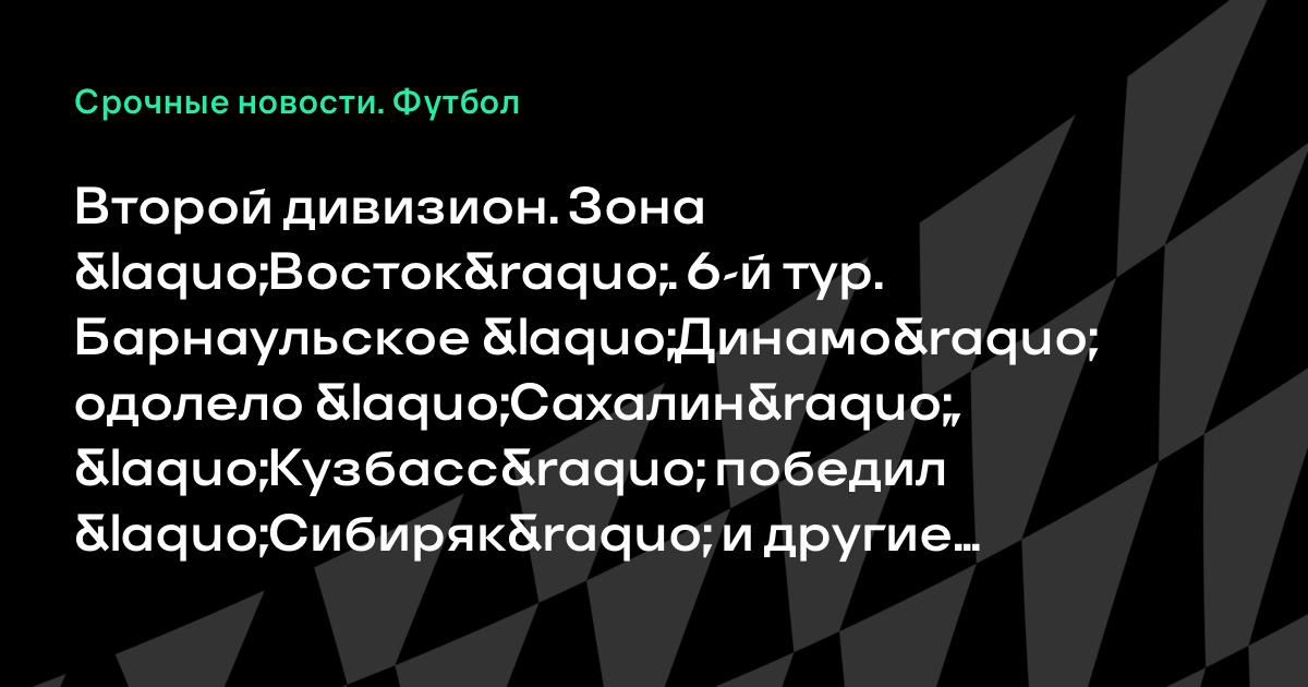 Второй дивизион. Зона «Восток». 6-й тур. Барнаульское «Динамо» одолело «Сахалин», «Кузбасс» победил «Сибиряк» и другие результаты