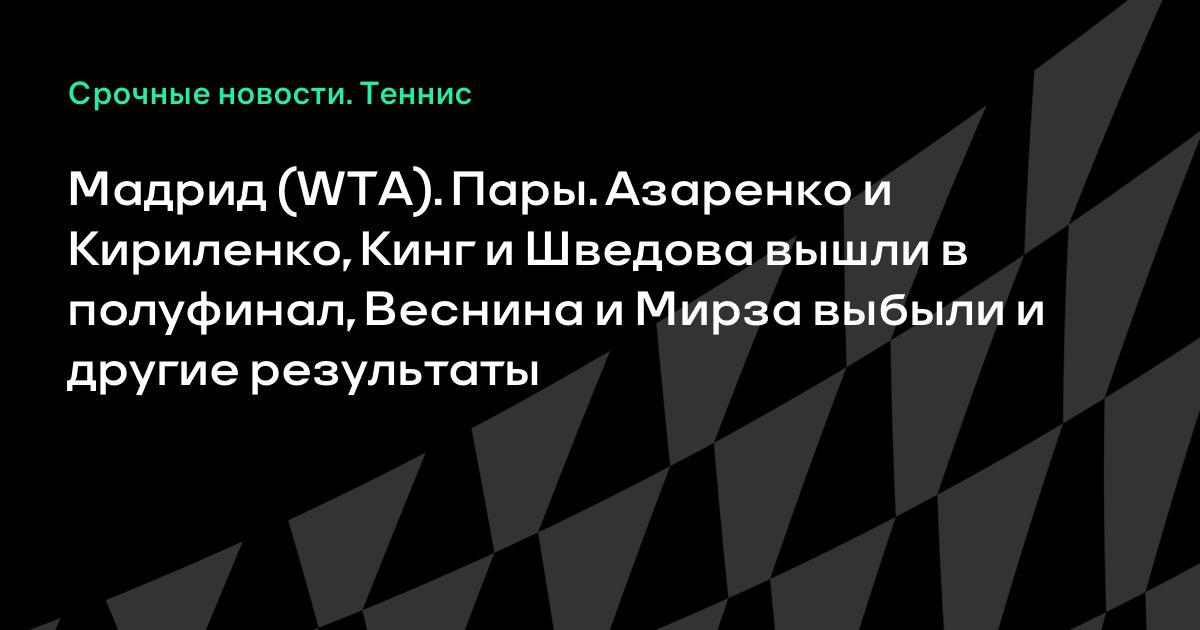 Мадрид (WTA). Пары. Азаренко и Кириленко, Кинг и Шведова вышли в полуфинал, Веснина и Мирза выбыли и другие результаты