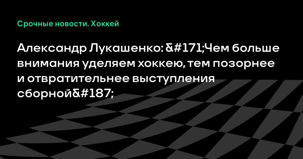 «Позориться таким образом недопустимо. И это не только хоккей. Но этому виду спорта мы уже уделили внимания столько, что больше и не придумаешь. А все получается наоборот: чем больше внимания, тем позорнее и отвратительнее выступления спортсменов», – приводит слова Лукашенко БЕЛТА.