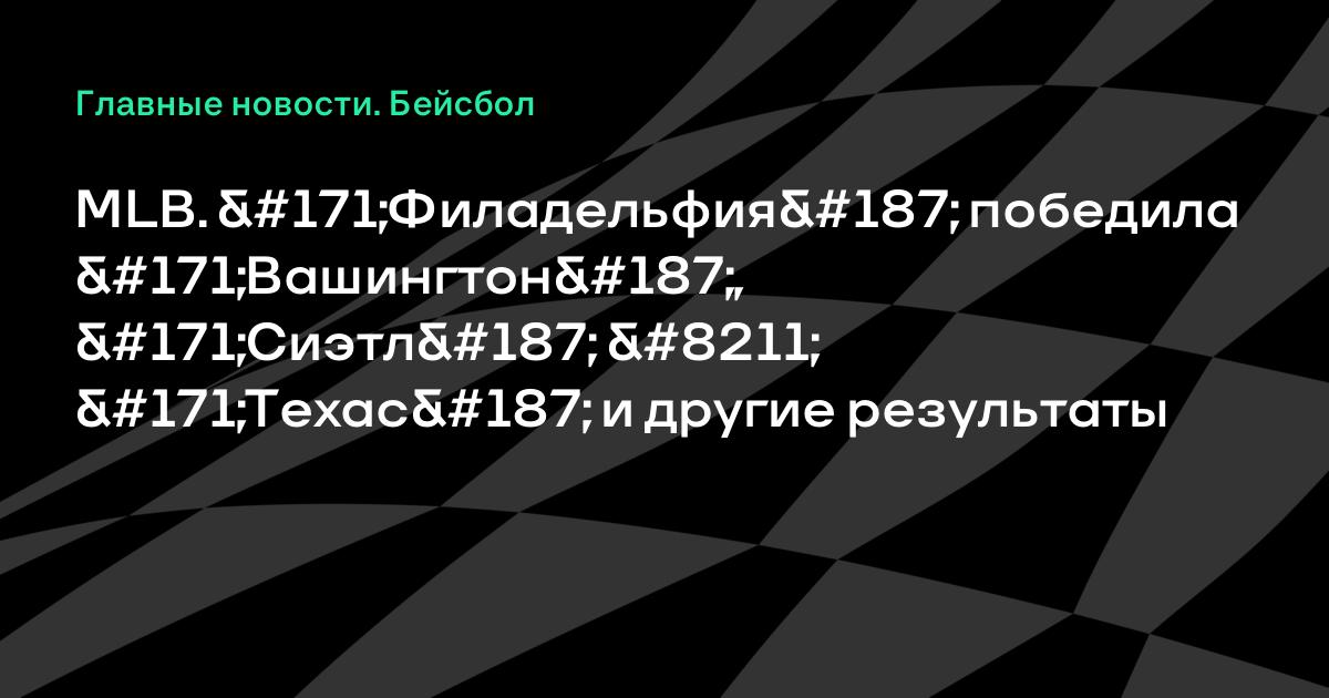 MLB. «Филадельфия» победила «Вашингтон», «Сиэтл» – «Техас» и другие результаты