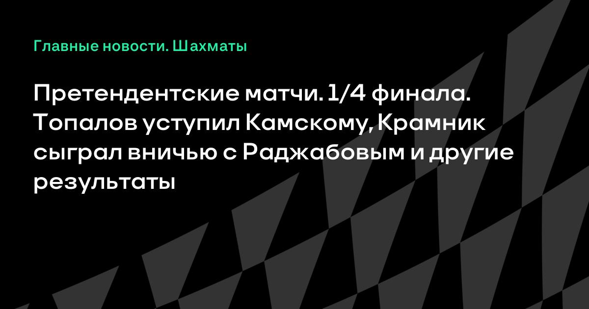 Претендентские матчи. 1/4 финала. Топалов уступил Камскому, Крамник сыграл вничью с Раджабовым и другие результаты
