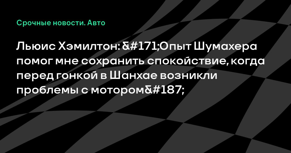 Льюис Хэмилтон: «Опыт Шумахера помог мне сохранить спокойствие, когда перед гонкой в Шанхае возникли проблемы с мотором»