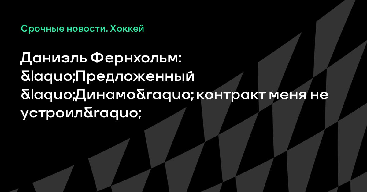 «Я получил предложение о контракте от «Динамо», но отклонил его. Посмотрим, предложат ли они что-нибудь новое. Надеюсь, после чемпионата мира все окончательно станет ясно», – приводит слова Фернхольма Hockey Expressen.