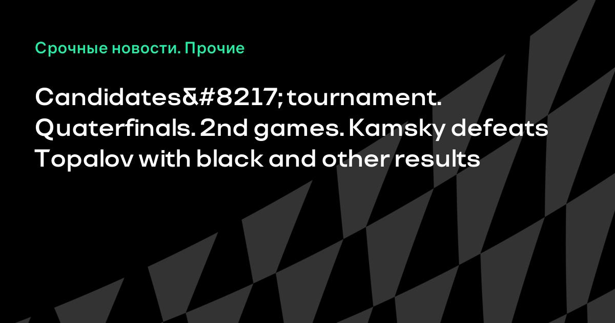 Candidates’ tournament. Quaterfinals. 2nd games. Kamsky defeats Topalov with black and other results
