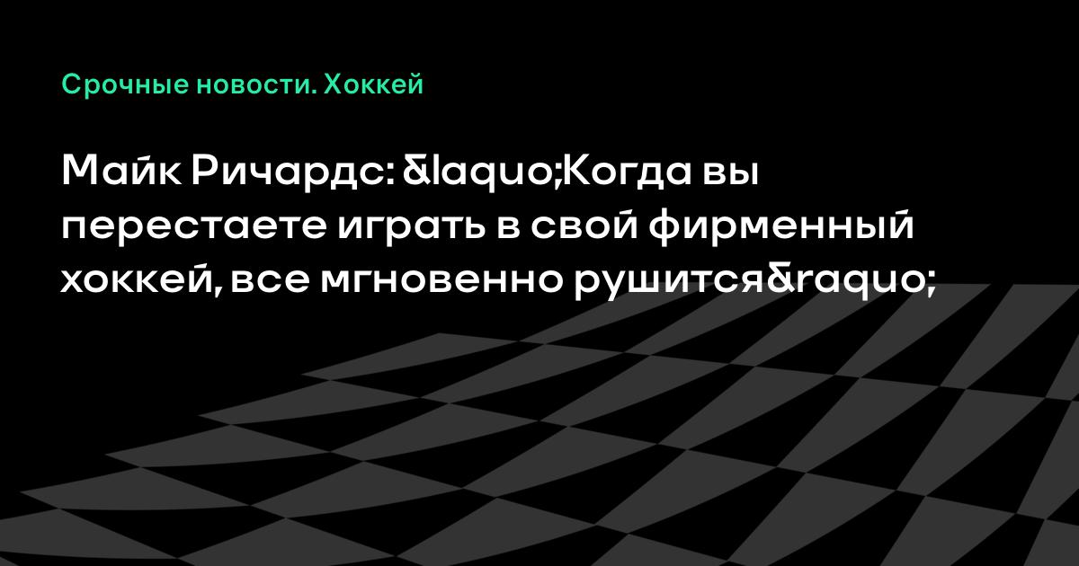 Майк Ричардс: «Когда вы перестаете играть в свой фирменный хоккей, все мгновенно рушится»